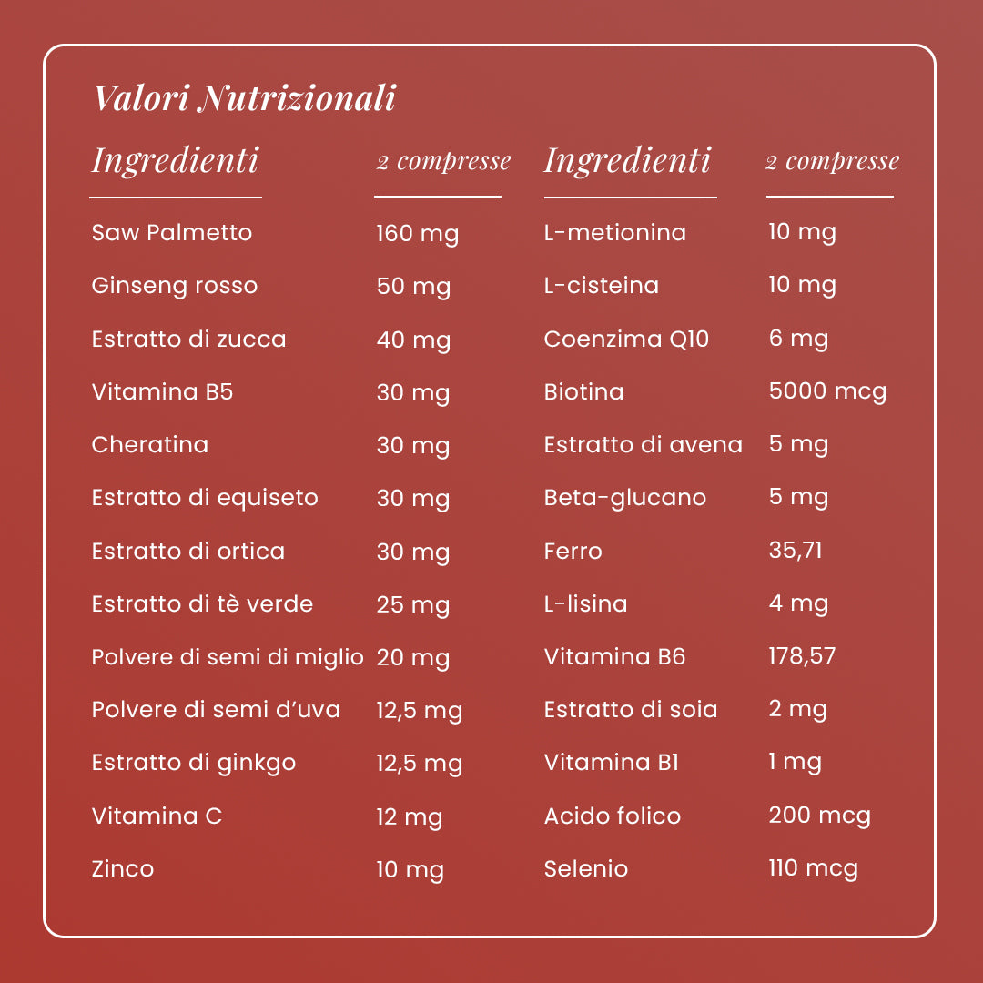 Tiamina (B1): Supporta la circolazione al cuoio capelluto.